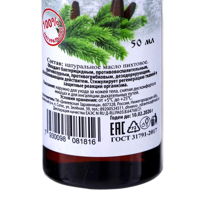 Объём флакона с пихтовым маслом составляет 50 мл.