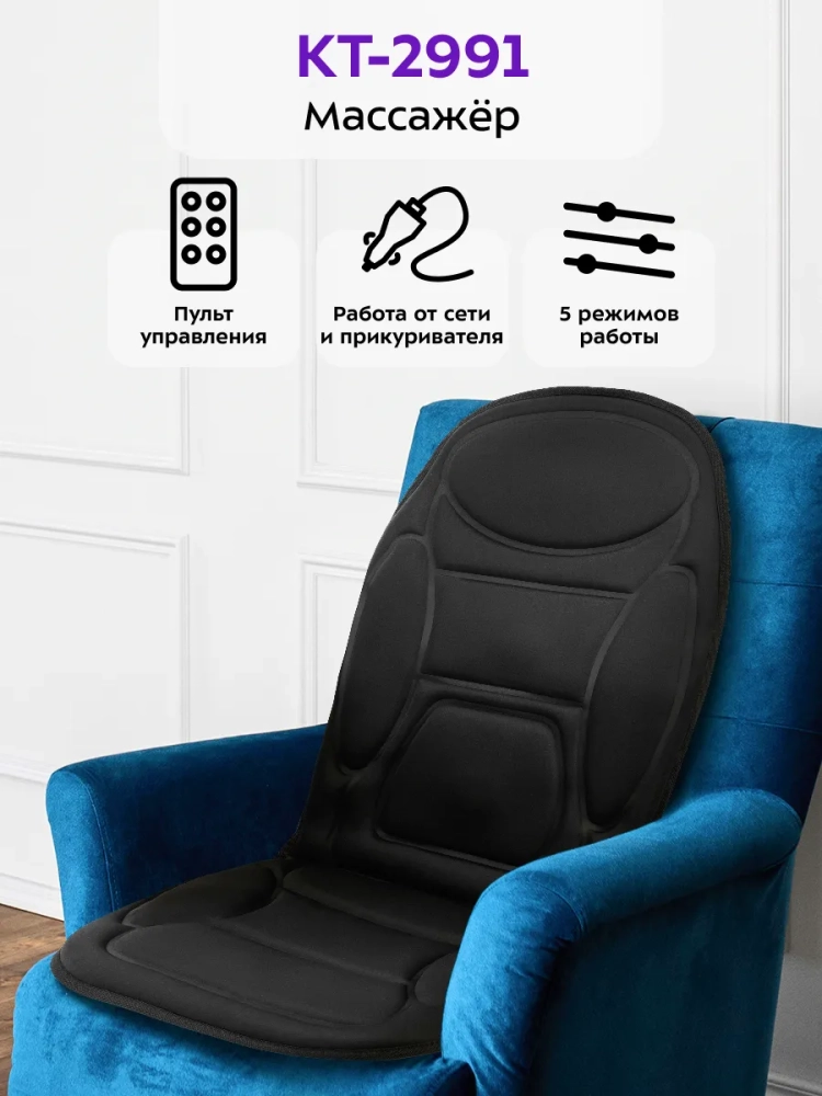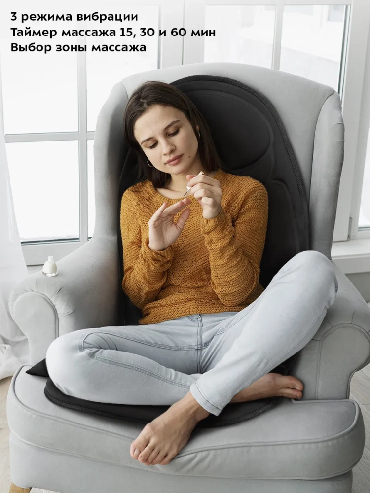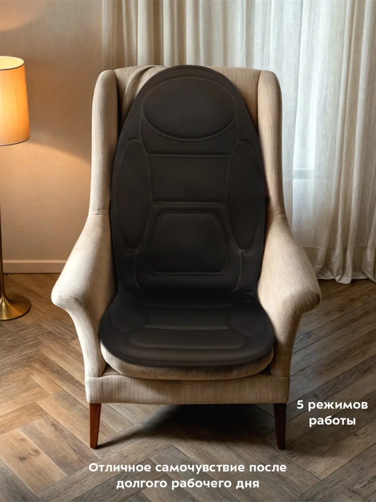 Массажер прост в управлении: расправьте его на кровати, диване или кресле с высокой спинкой и управляйте с помощью пульта, который можно убрать в карман для хранения. Вы можете зафиксировать массажер резинками, расположенными сзади массажера.