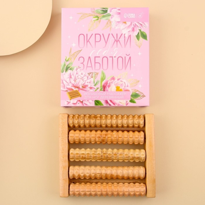 Массажёр «Барабаны», 5 рядов с шипами, 27 × 19 × 5 см, деревянный