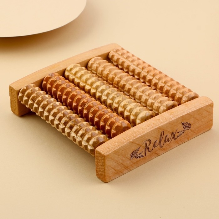 Массажёр «Барабаны», 5 рядов с шипами, 27 × 19 × 5 см, деревянный