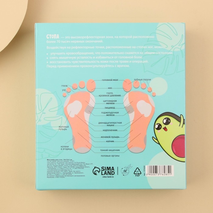 Стопы: массажёр воздействует на нервные окончания ступней, которые связаны с внутренними органами. Активизируются защитные функции организма.