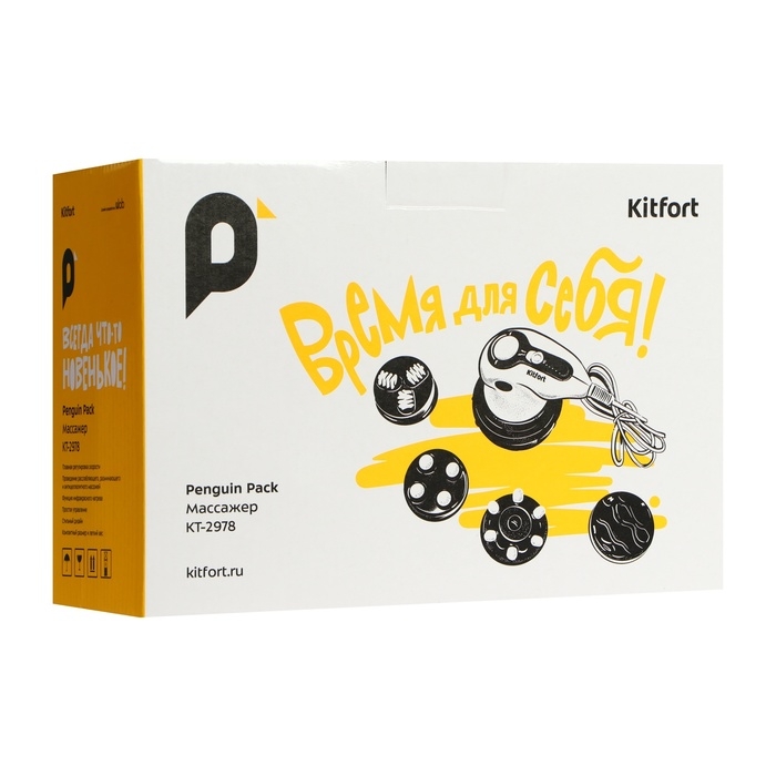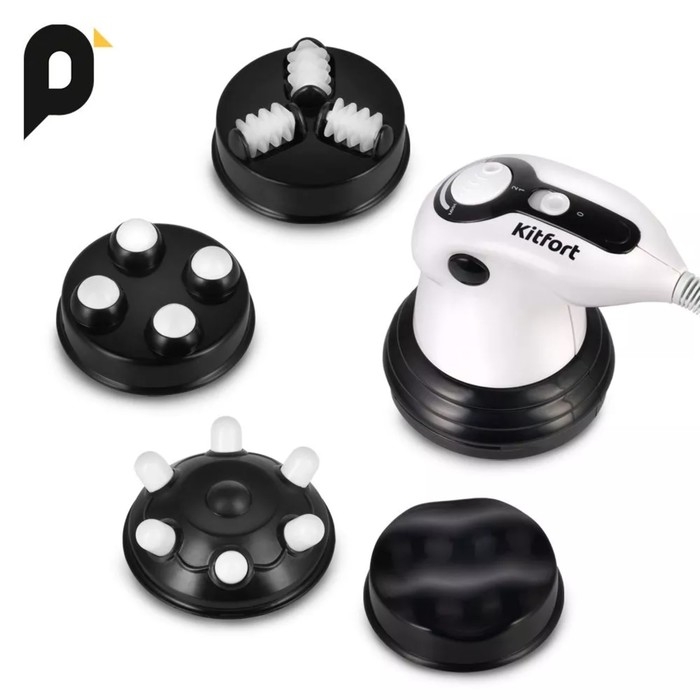 Массажёр для тела Kitfort КТ-2978, электрический, ротационный, 25 Вт, 4 насадки, белый