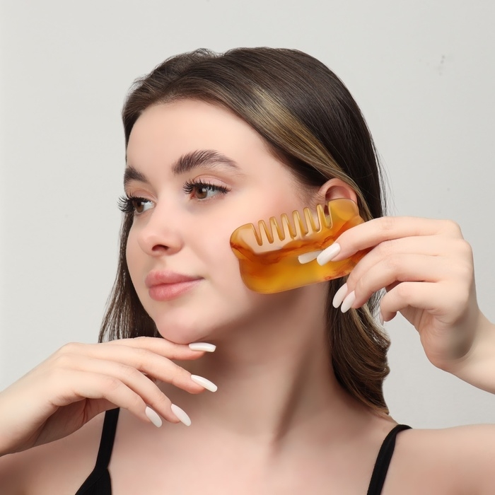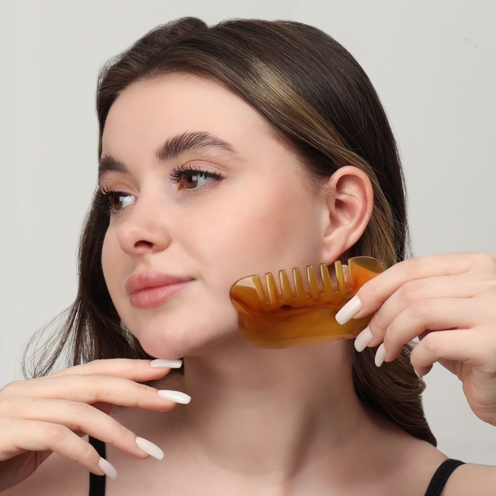 Массажёр Гуаша «Гребень», 9,5 × 5,5 см, PVC-коробка, цвет «янтарный»
