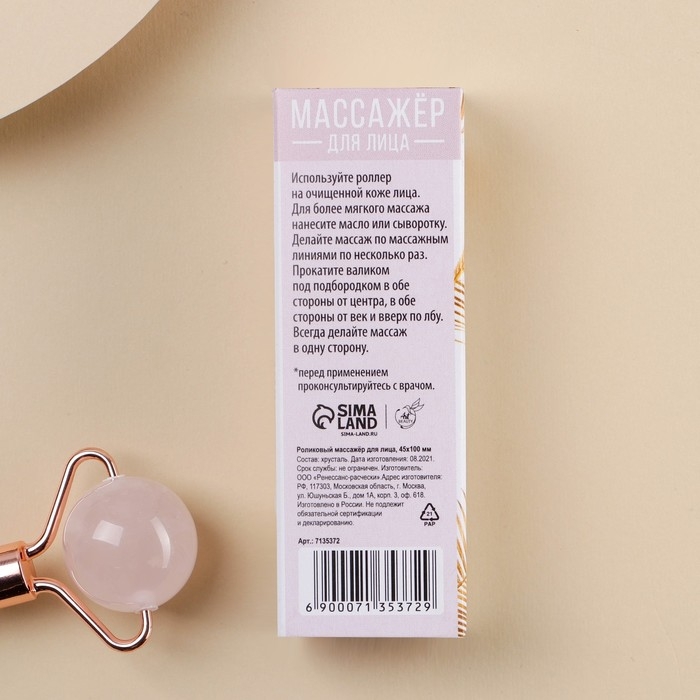 Роликовый массажёр сделан из природных материалов. Ролик помогают снять отёчность лица, уменьшить количество морщин, подтягивает кожу, тонизирует её.