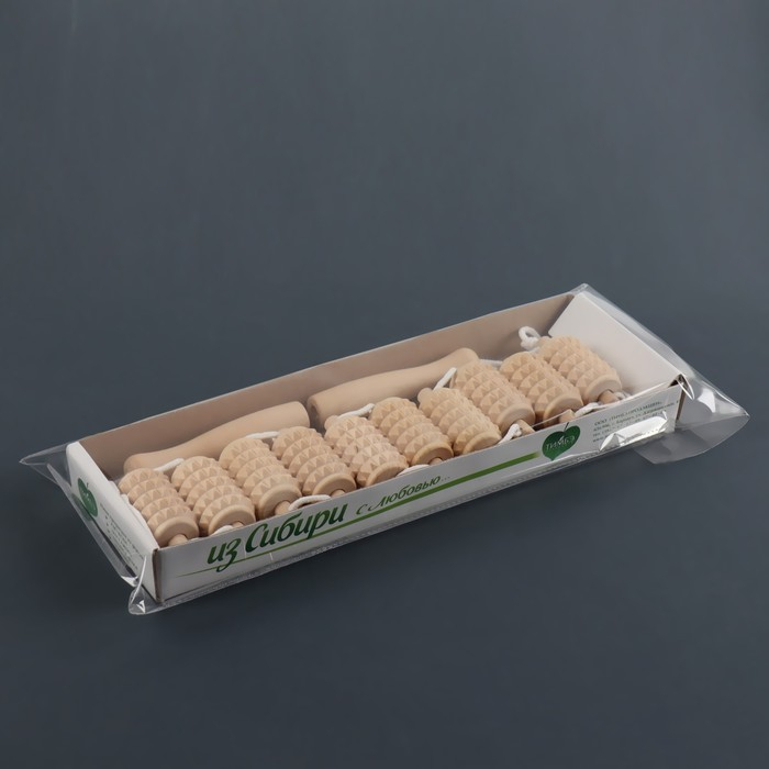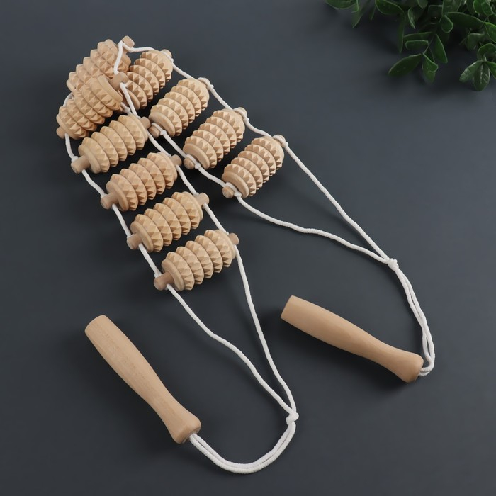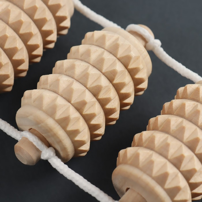 Массажёр - лента, деревянный, роликовый, зубчатый, 2,8 × 6,8 × 122,5 см, 10 звеньев