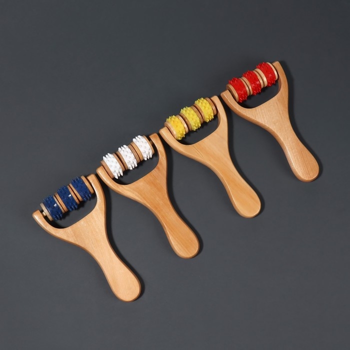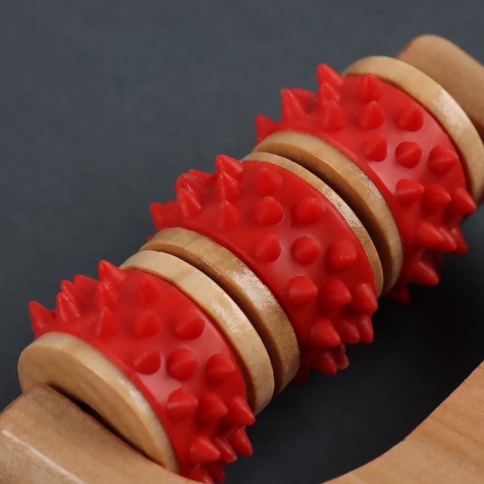 Массажёр - роллер, с шипами, универсальный, деревянный, 14,5 × 8 × 2 см, цвет МИКС