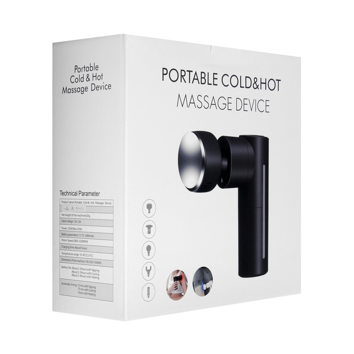 Массажер тела BM-HT075, перкуссионный, 25 Вт, до 3200 уд/мин, 5 насадок, от АКБ, чёрный