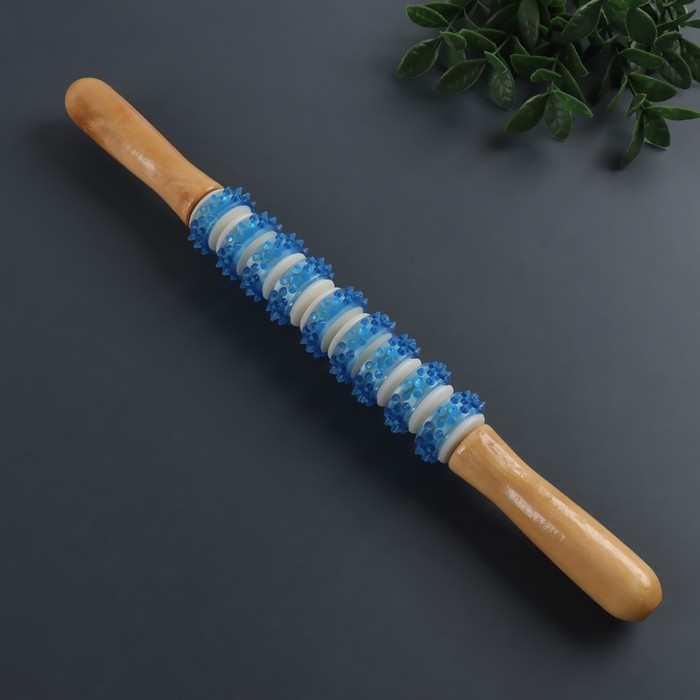 Массажёр «Скалка», универсальный, 37,5 x 4 см, 9 колёс с шипами, цвет МИКС