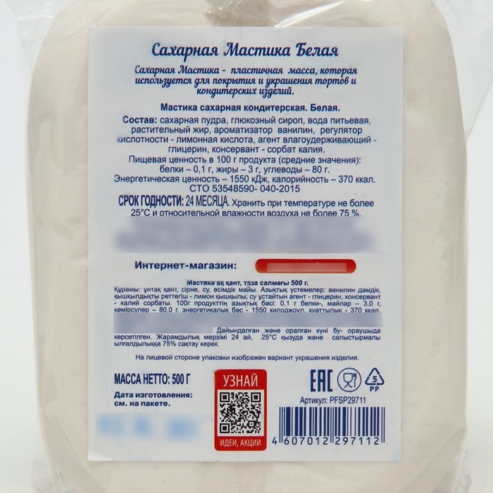 Мастика сахарная белая, С. Пудовъ, 0,5 кг
