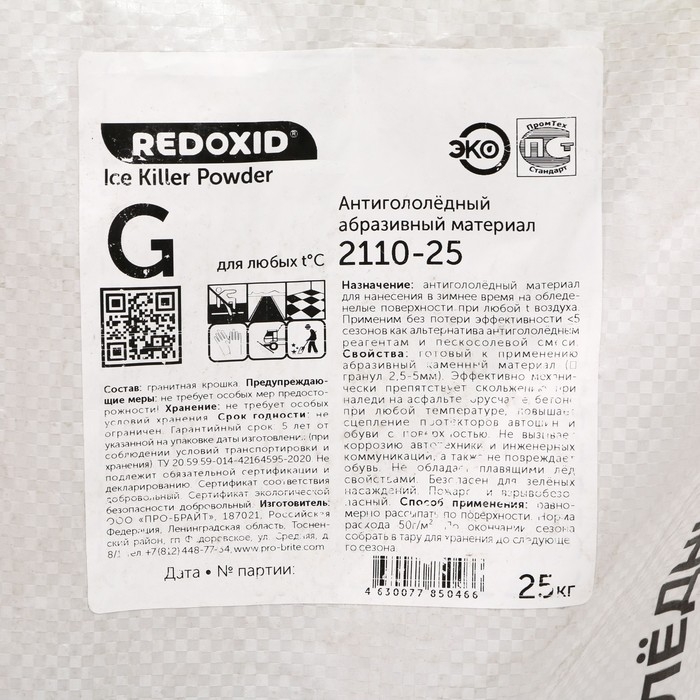 - Материал: Ice Killer Powder G представляет собой порошок, который содержит абразивные частицы. Эти частицы помогают механически разрушать лед и улучшают сцепление транспортных средств с дорожным покрытием.