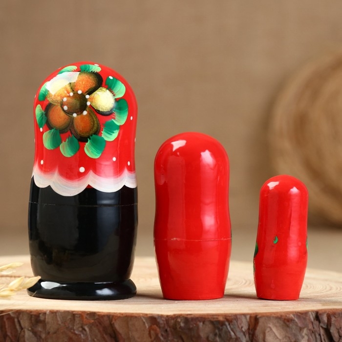 Матрёшка «Земляничка», чёрный платок, 3 кукольная, 10 см