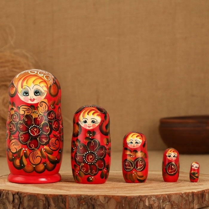 Матрёшка 5-ти кукольная "Аля" бутоны , 14-15см, ручная роспись.