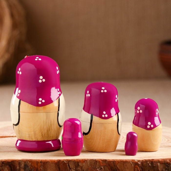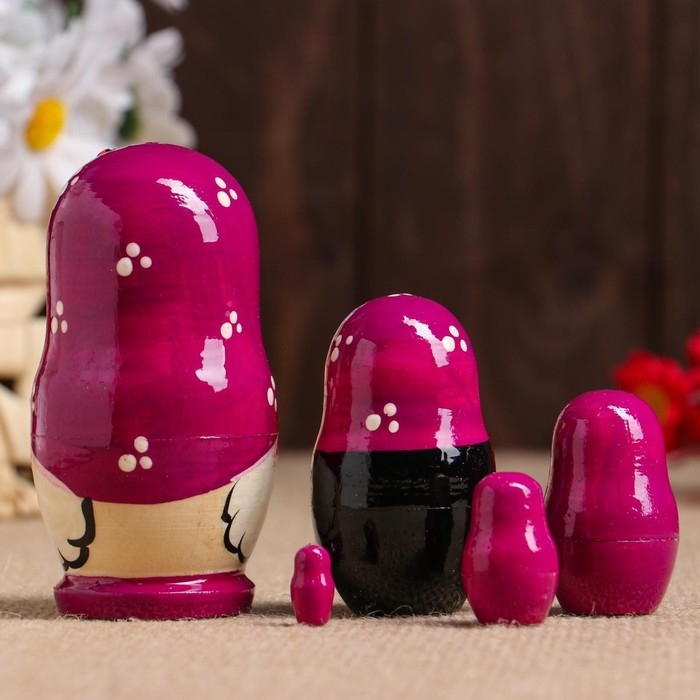Матрёшка «Божья коровка», фиолетовый платок, 5 кукольная, 9-11 см