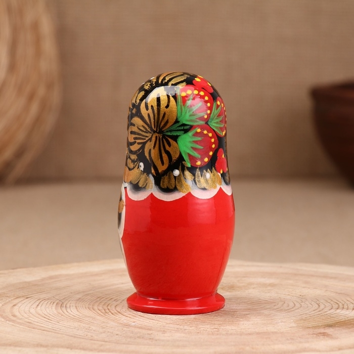 Матрёшка «Земляничка», чёрный платок, 3 кукольная, 10 см