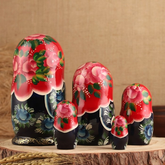 Матрёшка «Тройка», красный платок, 5 кукольная, люкс