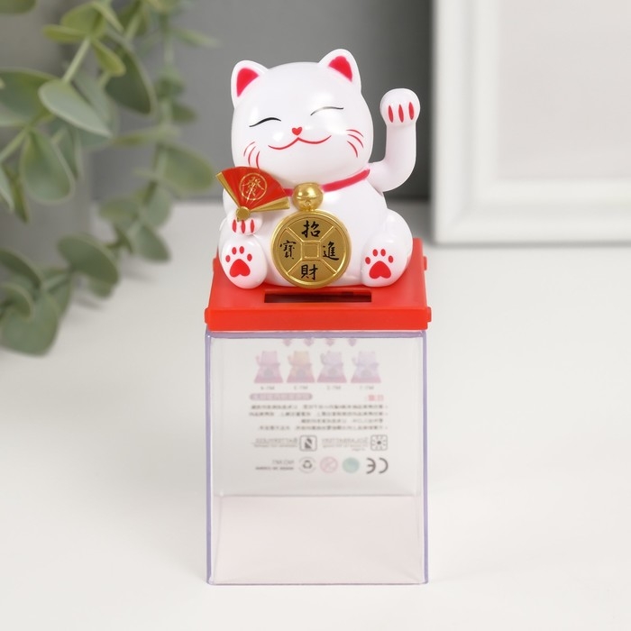 Маятник пластик "Белый Манэки-нэко с веером и монеткой" 5х5х5 см