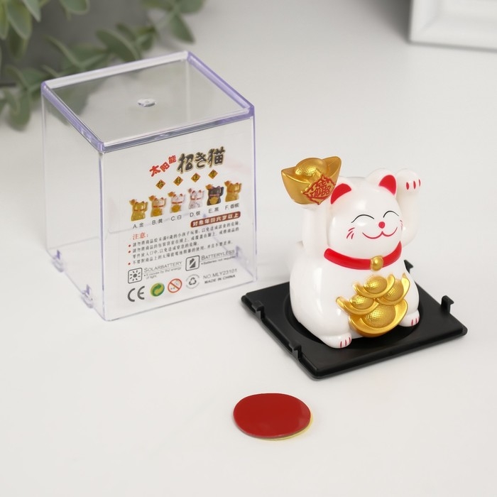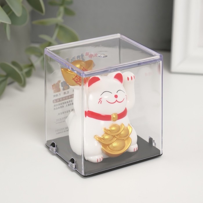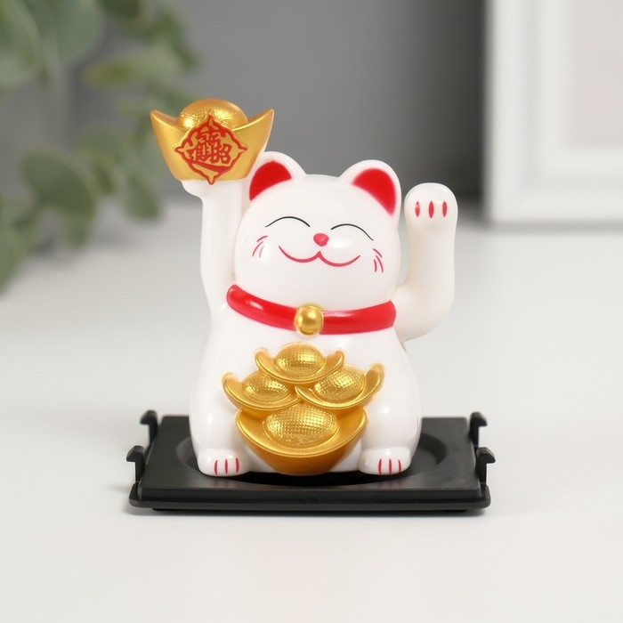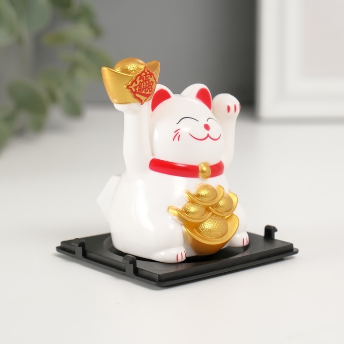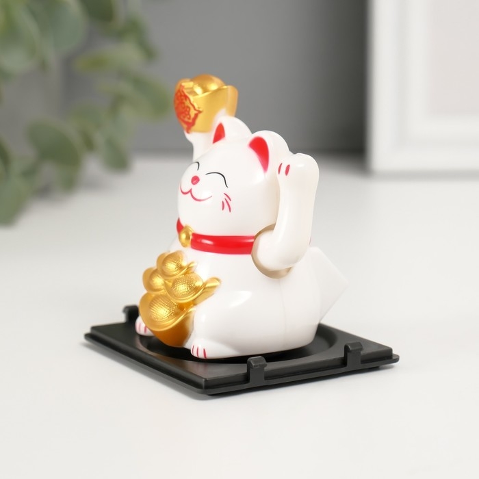 Маятник пластик "Белый Манэки-нэко со слитками Ямб" 5х5х6 см