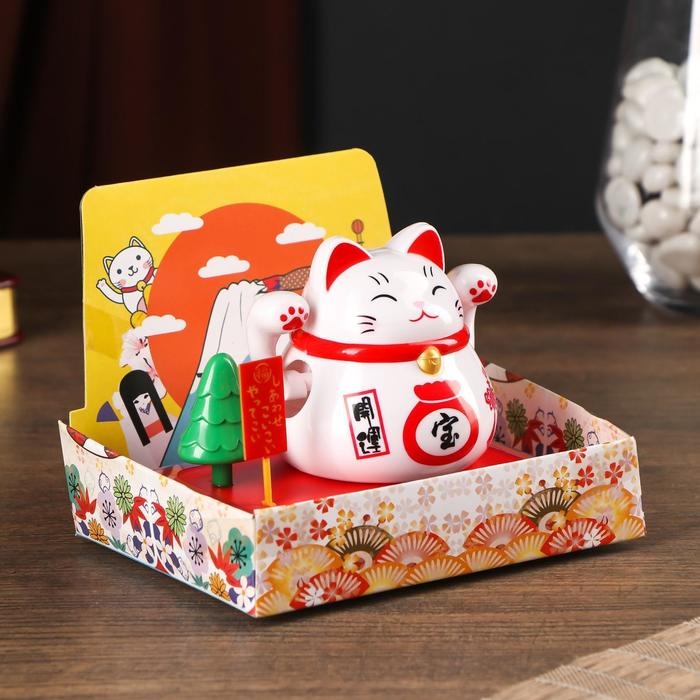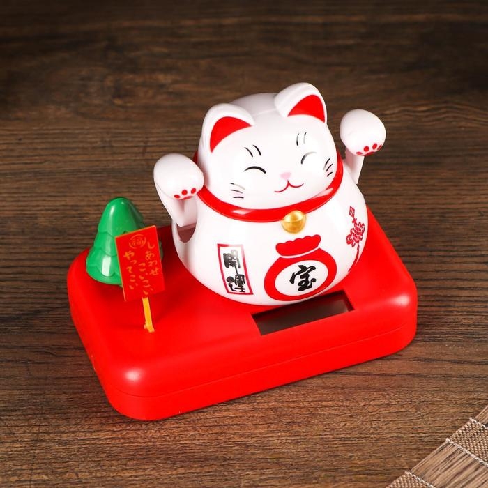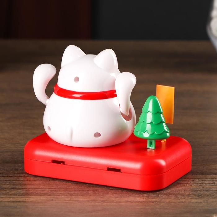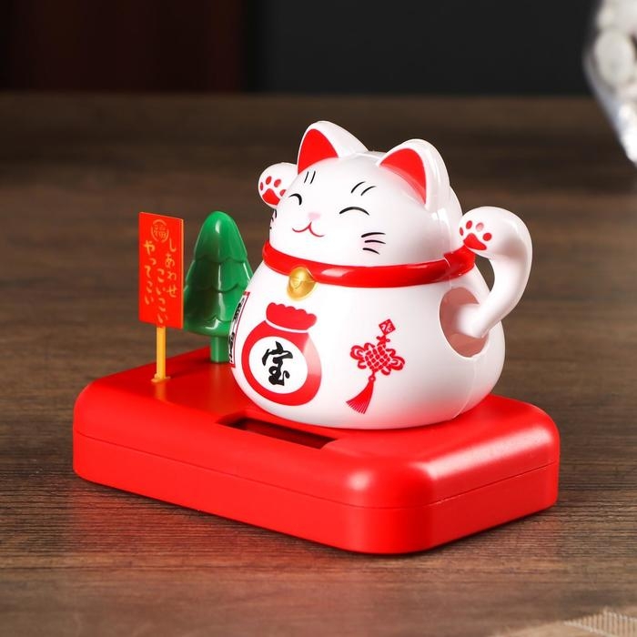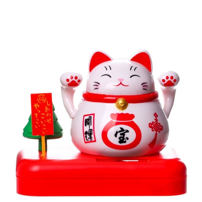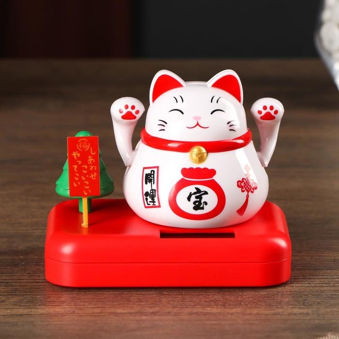 Маятник пластик от солн.батареи "Кот Манэки-нэко с деревом и мешком золота" белый 8х10х6 см 501832