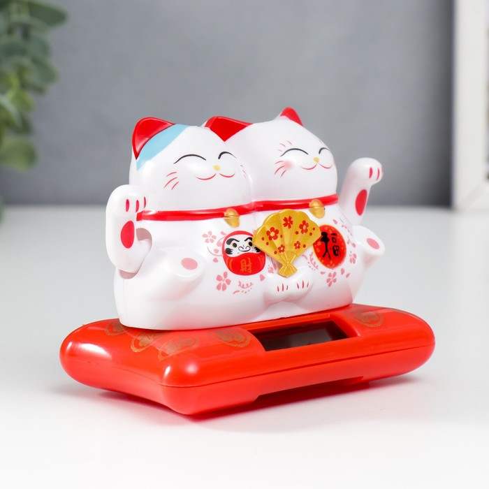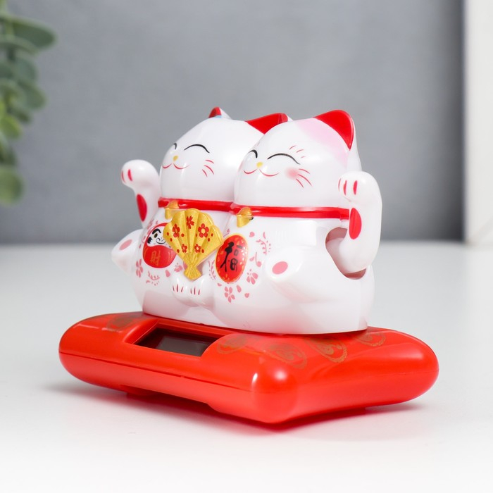 Маятник пластик от солнечной батареи "Два кота Манэки-нэко с веером" 6,5х8,5х5,5 см