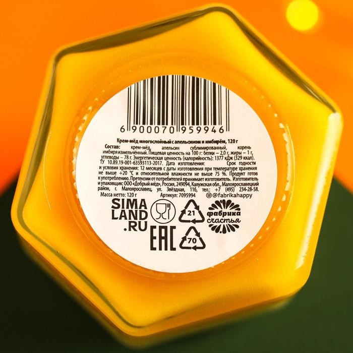 Мёд кремовый двухслойный «Аромат нового года» с апельсином и имбирем, 120 г