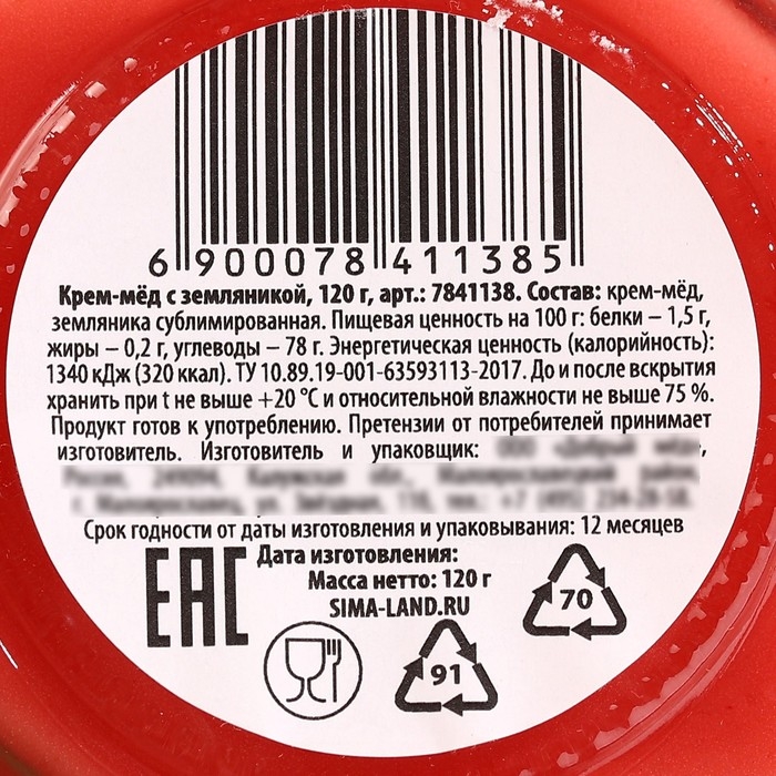 Состав: крем-мёд, земляника сублимированная.