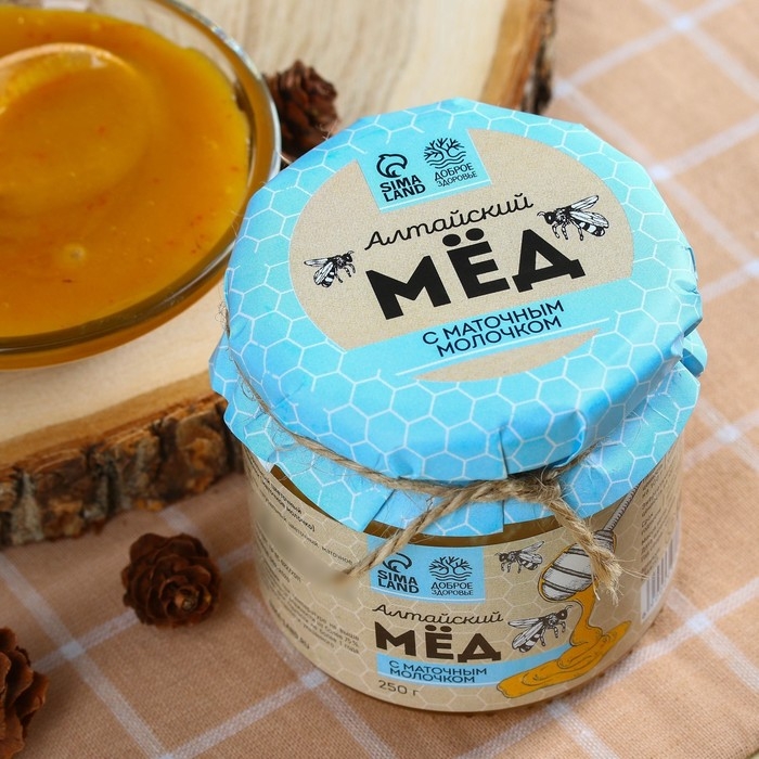 Мёд натуральный цветочный «Алтайский» с маточным молочком, 250 г.