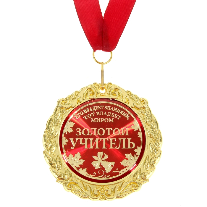Медаль на открытке «Золотой учитель», d=7 см.
