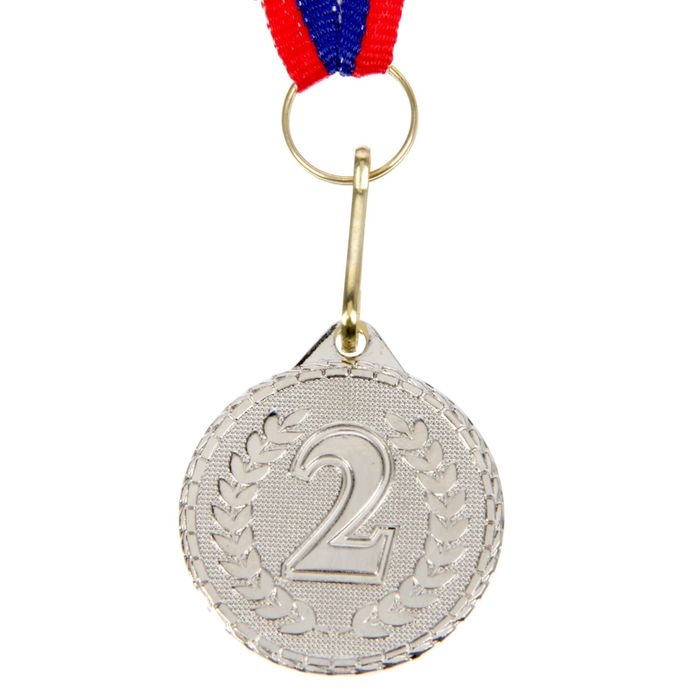 Медаль призовая 041, d= 3,2 см. 2 место. Цвет серебро. С лентой