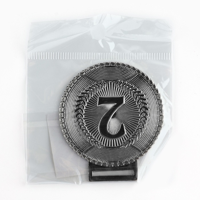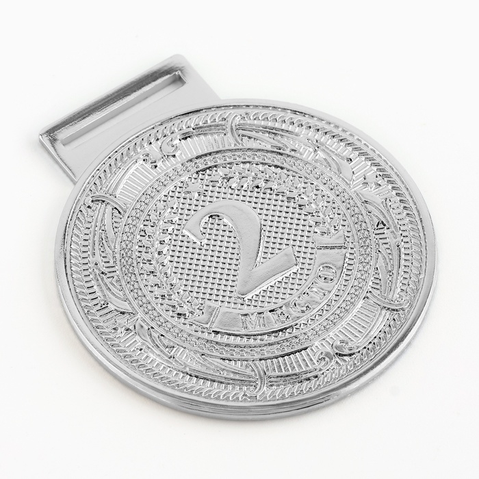 Медаль призовая 058, d= 5 см. 2 место. Цвет серебро. С лентой