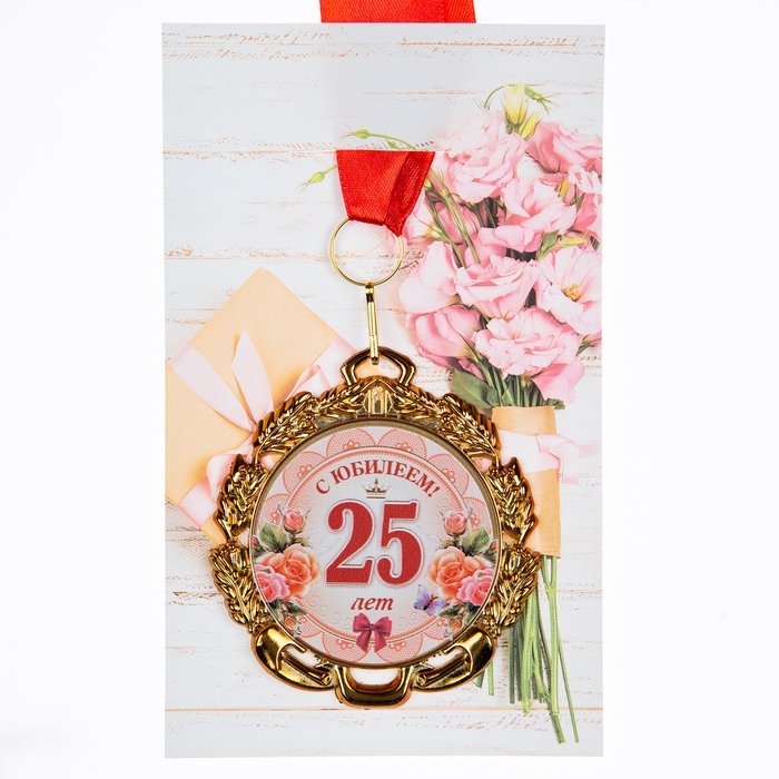 Медаль юбилейная с лентой "25 лет. Цветы", D = 70 мм