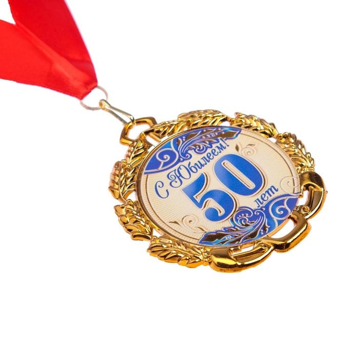 Медаль юбилейная с лентой "50 лет. Синяя", D = 70 мм