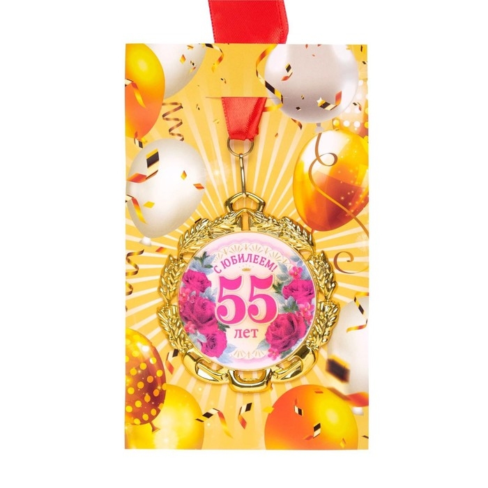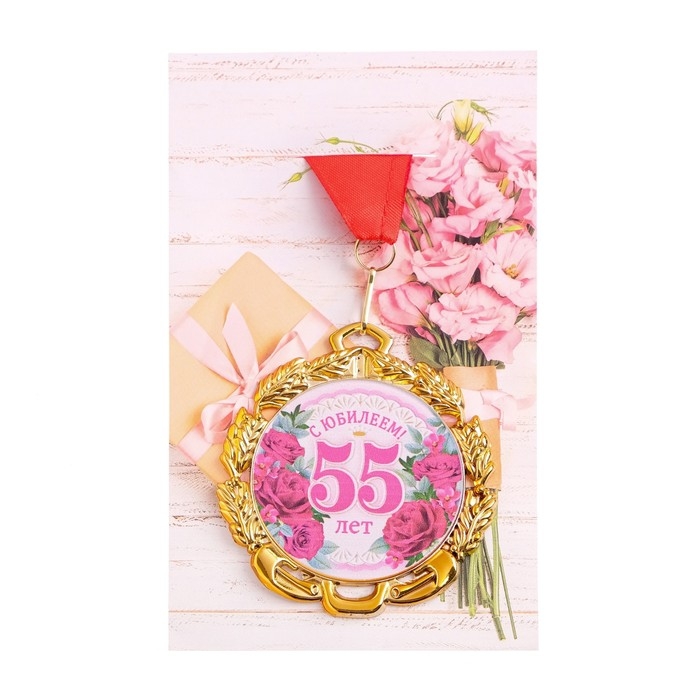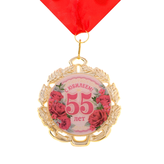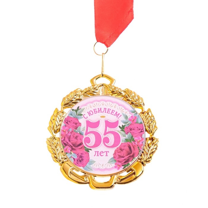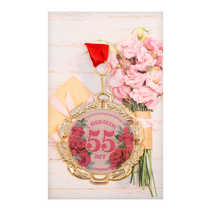 Медаль юбилейная с лентой "55 лет. Цветы", D = 70 мм