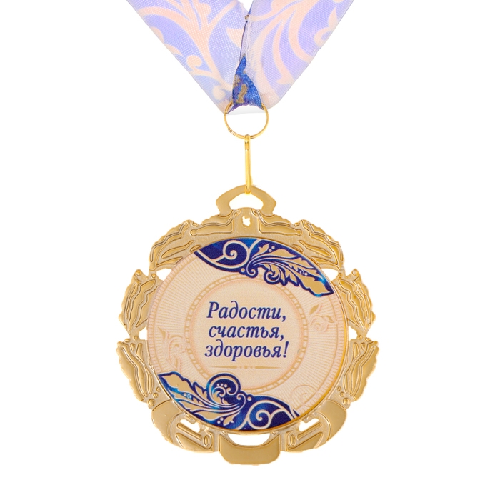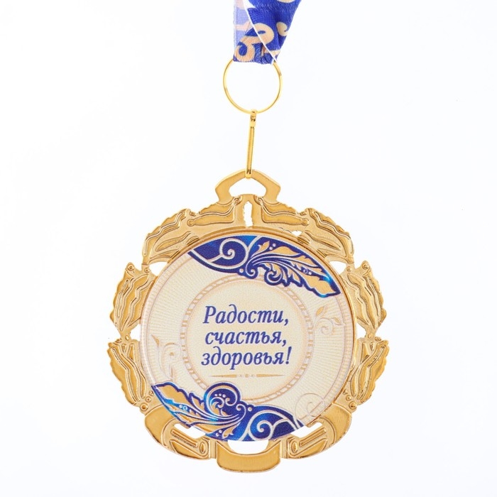 Медаль юбилейная с лентой "60 лет. Синяя", D = 70 мм