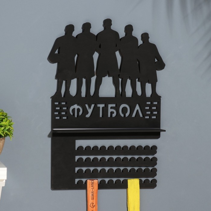 Медальница с полкой "Футбол" черный цвет, 42,5х27,5 см
