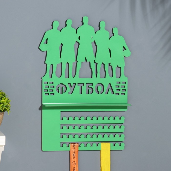 Медальница с полкой "Футбол" зеленый цвет, 42,5х27,5 см