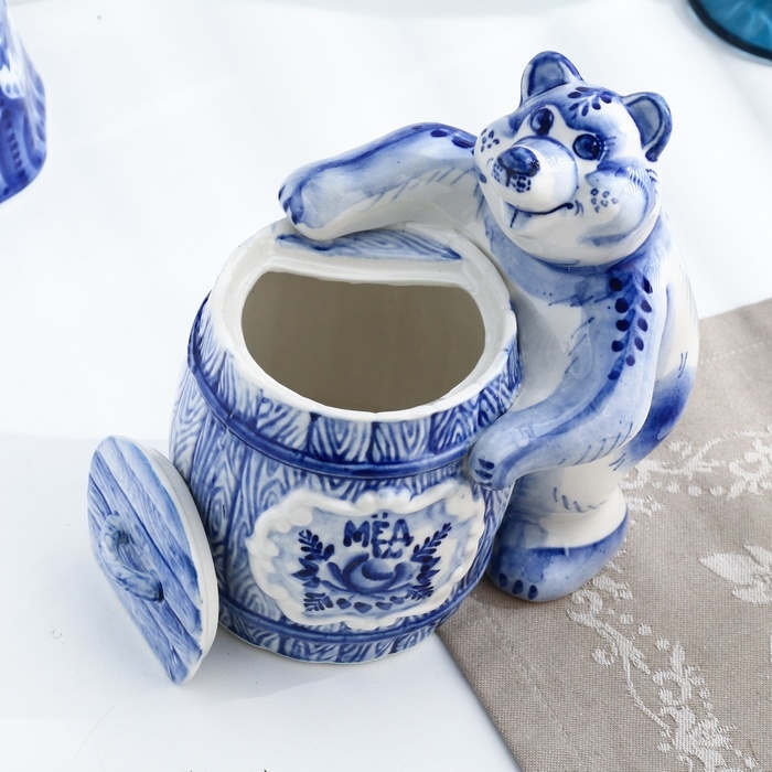 Ёмкость фарфоровая для мёда с ложкой BellaTenero «Бочонок», 400 мл, цвет белый
