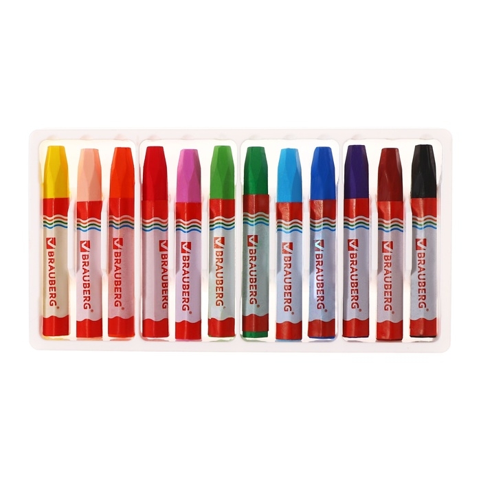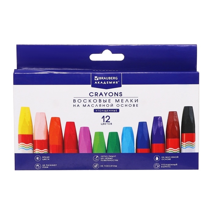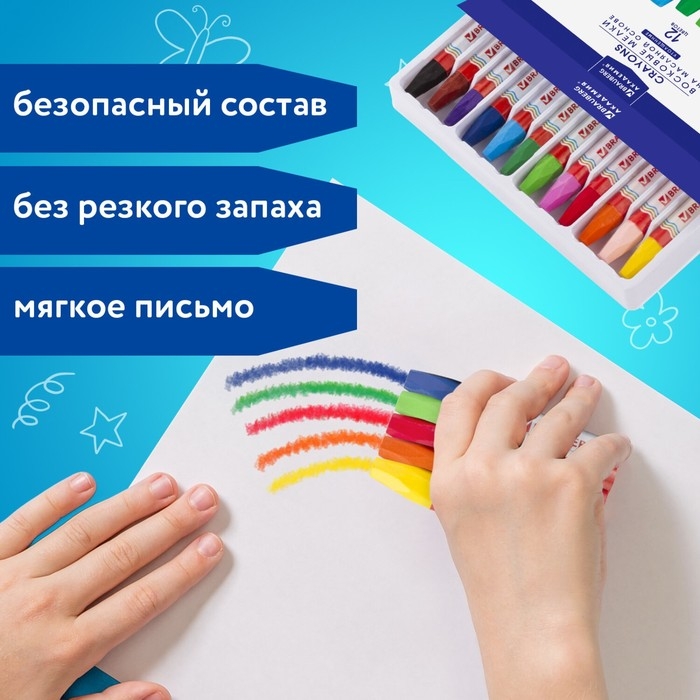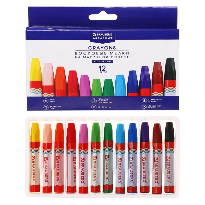Мелки восковые 12 цветов BRAUBERG Академия, утолщенные, шестигранные, на масляной основе