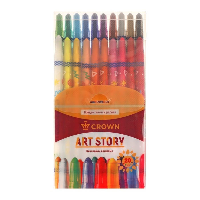 Мелки восковые 20 цветов Crown Art Story, выкручивающийся стержень, ПВХ, европодвес