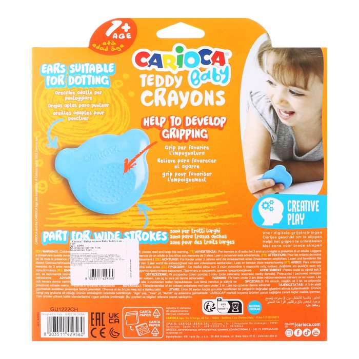 Мелки восковые 6 цветов, Carioca "Baby", фигурные, для малышей