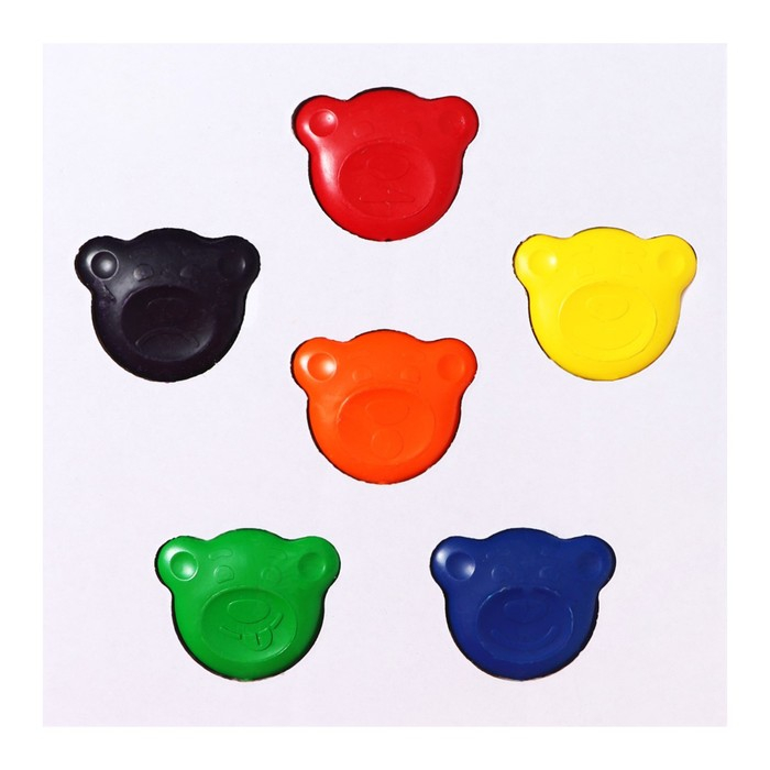 Коробка с 6 цветными мелками круглой формы в виде головы мишки Тедди.