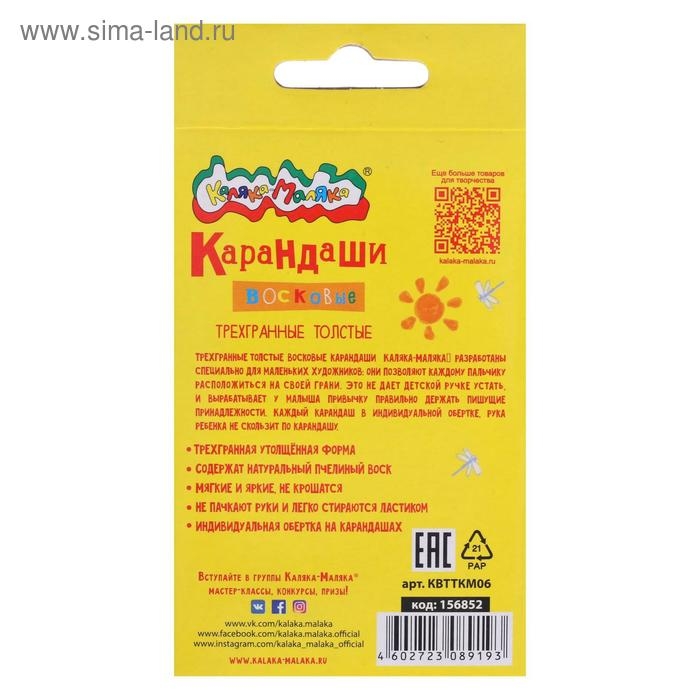 Мелки восковые 6 цветов, "Каляка-Маляка", трёхгранные