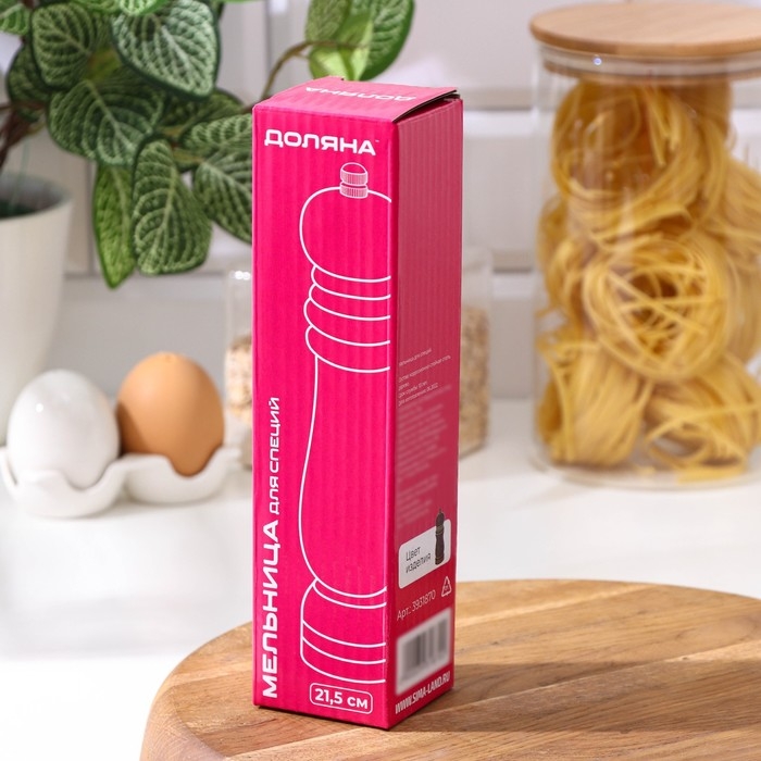 Мельница для специй Доляна, 21×4,5 см, металлический механизм, цвет тёмное дерево — изящный и практичный аксессуар для каждого увлечённого кулинара.