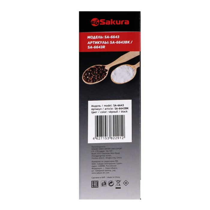 Мельница электрическая Sakura SA-6643BK, подсветка, чёрная