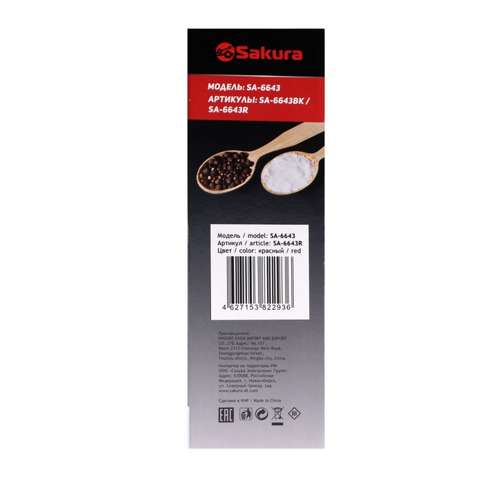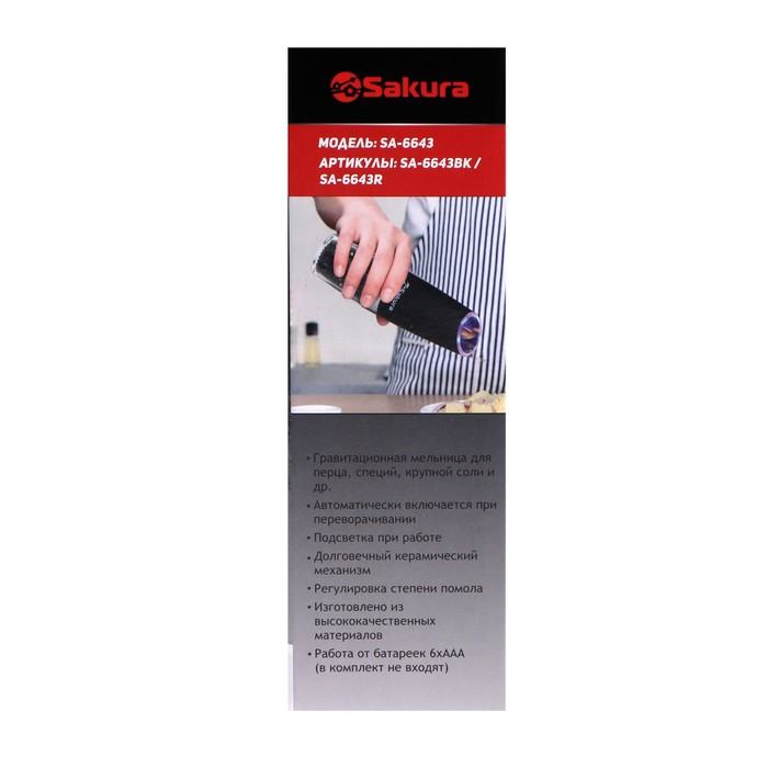 Мельница электрическая Sakura SA-6643R, подсветка, красная
