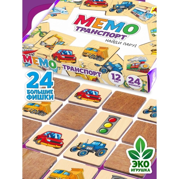 Мемори «Машины и транспорт» 24 деревянных элемента