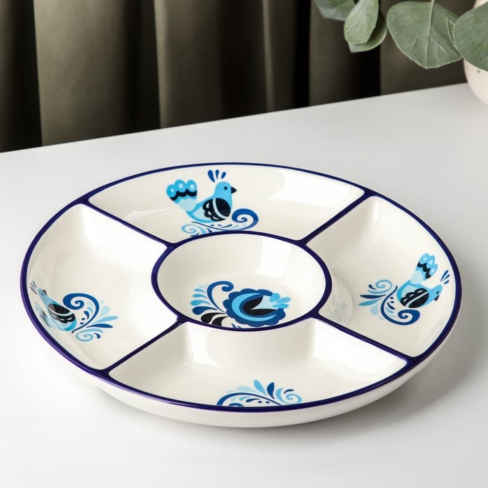 Менажница 5 ячеек Доляна «Свиристель», d=26 см, цвет белый