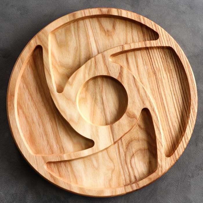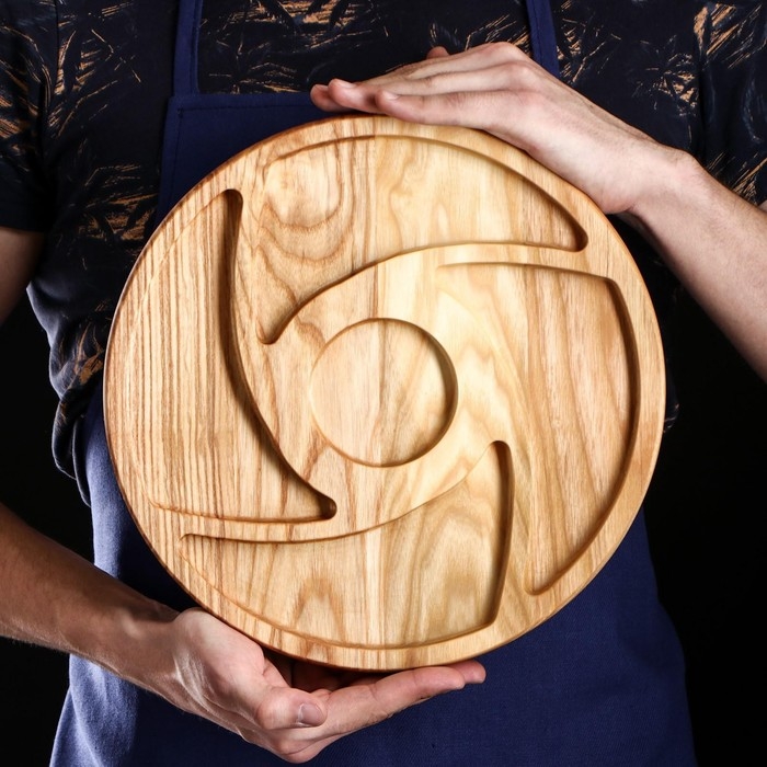 Менажница деревянная "Круглая", с разделочной доской, d=30 см, массив ясеня