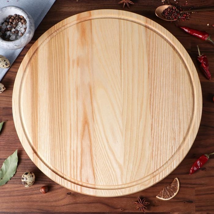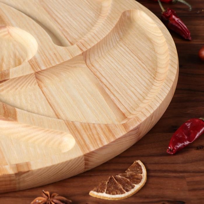 Менажница деревянная "Круглая", с разделочной доской и соусником, d-40 см, массив ясеня