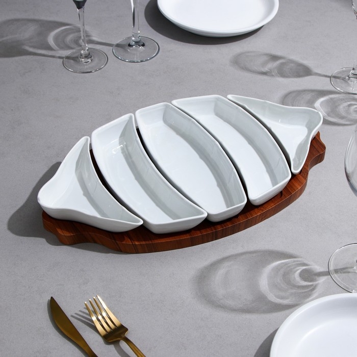 Менажница на деревянном основании — это эстетика стиля и удобство сервировки на вашем столе. Разлейте по мискам соусы, заправки или насыпьте специи, подайте на стол к мясным блюдам. Любите домашние чаепития? Используйте керамические емкости для варенья, меда и конфет. Решили провести приятный вечер с бокалом вина? Менажница отлично подходит для сыра, орехов и других закусок. Необычная подача блюд не оставит равнодушными ваших гостей и домочадцев. Утонченный дизайн позволяет набору вписаться в любой интерьер, он везде будет к месту. Менажница выполнена из фарфора. Такую посуду нельзя мыть в посудомоечной машине и использовать в СВЧ.