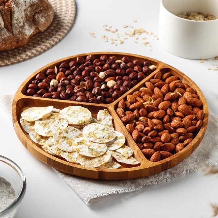 Никак не можете отучить себя от вредных перекусов? Изящная менажница из натурального дерева не даст вам пройти мимо орешков и сухофруктов. Изделие станет стильным и уютным элементом вашей кухни и незаменимым аксессуаром для сервировки стола.
